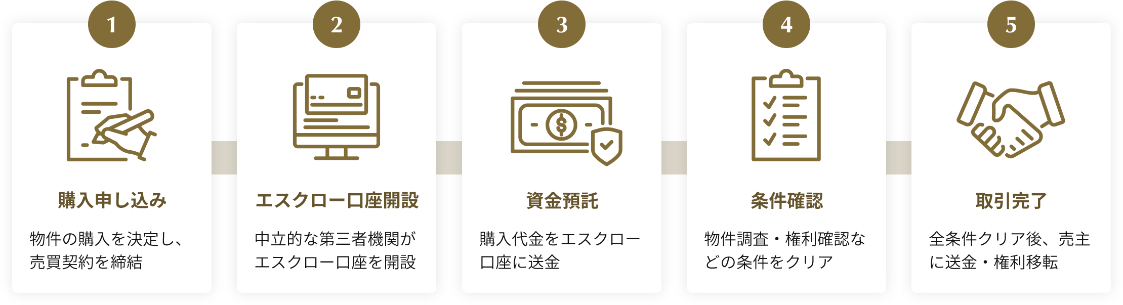 物件の権利関係、建物の状態など、全ての条件がクリアされてから初めて資金が移動。
